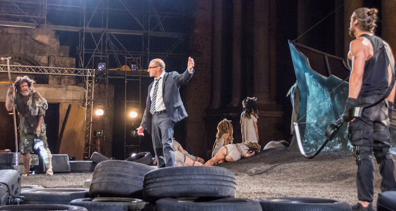 Es curioso como no hace falta reinterpretar a Plauto. Los orígenes de sus enredos siguen plenamente vigentes a fecha de hoy. Un político a corromper, un conseguidor, una fortuna, unos hijos que son ninis, los oprimidos que culpan de todo al político, los bancos ... Todo un lío desternillante dirigido por Felix Estaire, con un toque musical de gran calidad, e interpretado por Ángel Ruiz, Eva Marciel, Rafa Núñez, Juan Carlos Castillejo, Roser Pujol, Pablo Gallego Boutou, Noelia Marló, Cándido Gómez, Chema Pizarro y Pablo Romo.