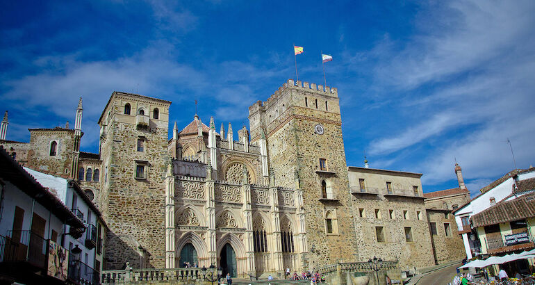 Al pie del Pico de las Villuercas y con menos de dos mil habitantes, Guadalupe es un lugar emblemático para todos los Extremeños. Símbolo por su patrona, la Virgen de Guadalupe, cuya talla está custodiada en el Real Monasterio. Primera Maravilla Rural y Pueblo más Bonito y Bueno de España. De estos títulos concedidos recientemente, damos fe. Pasear por sus calles antes o después de visitar el Monasterio, respirar el aire de la sierra, regalar a nuestros ojos una explosión de plantas y flores con las que sus habitantes adornan las calles permanentemente y, finalmente, subir al Pico de las Villuercas, el punto más alto de Extremadura accesible con automóvil, para contemplar el Geoparque en toda su extensión.